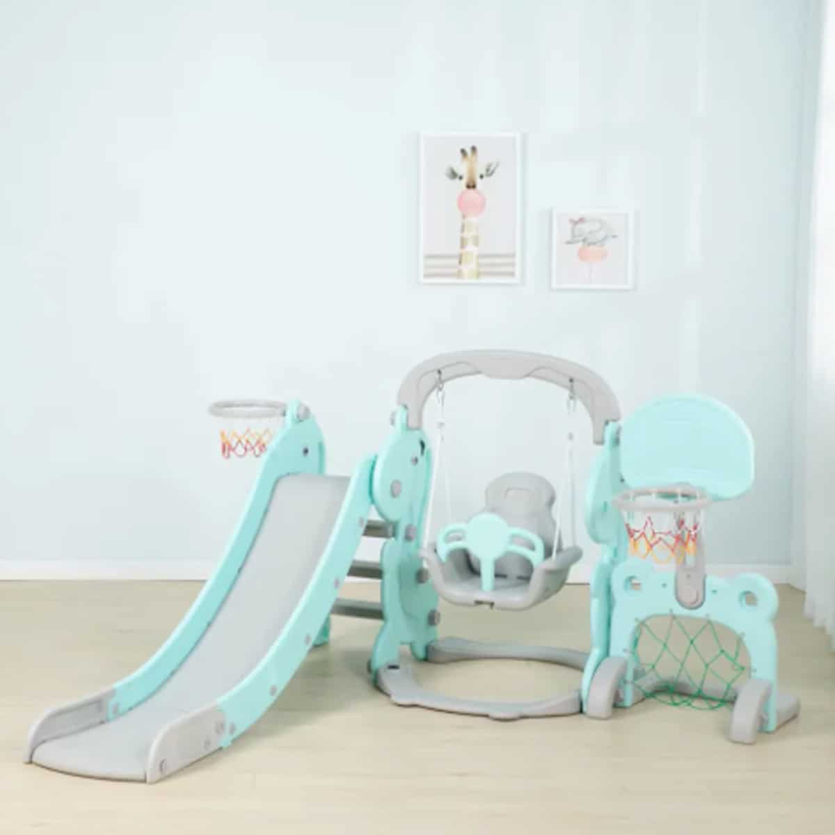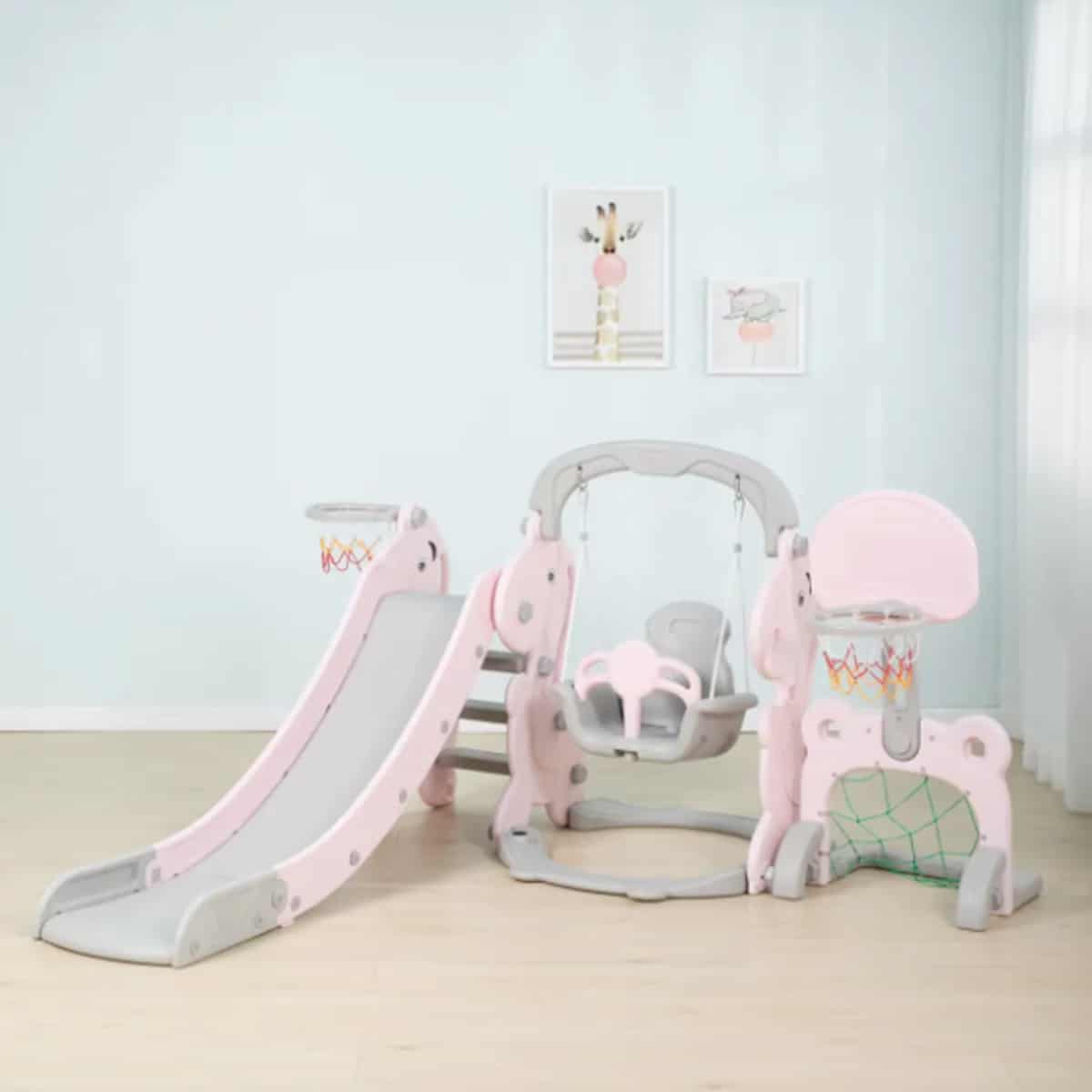 Juego multifacético de plástico para interiores o exteriores, múltiples actividades colores rosa y azul.