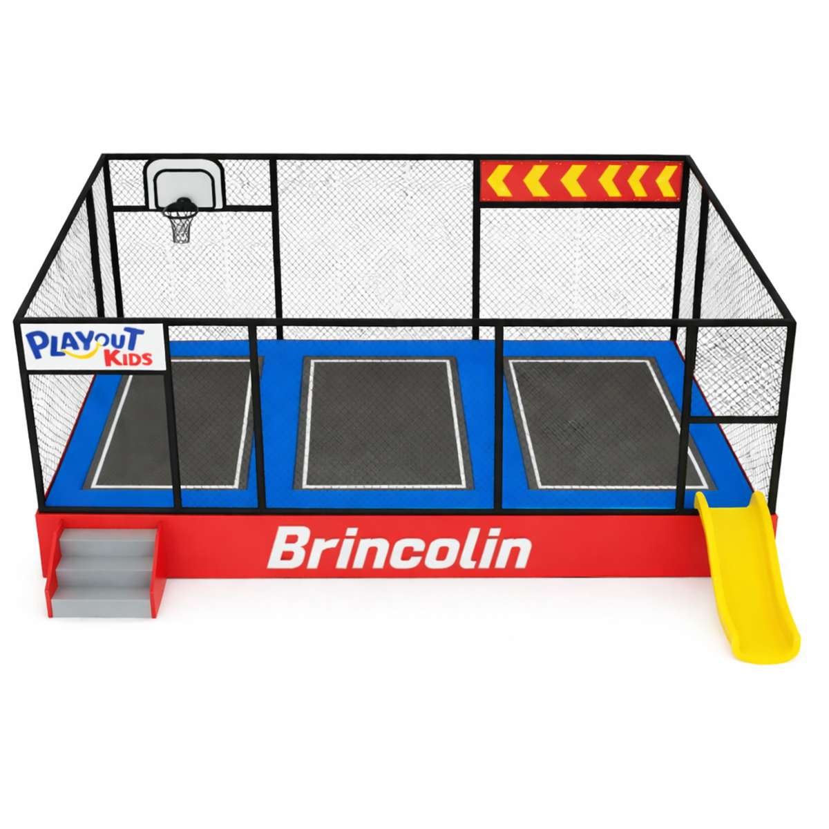 Incluye: Tres camas elásticas, una resbaladilla, un tablero de