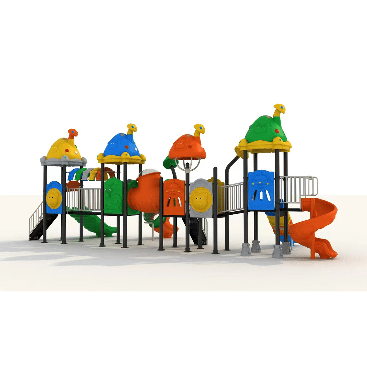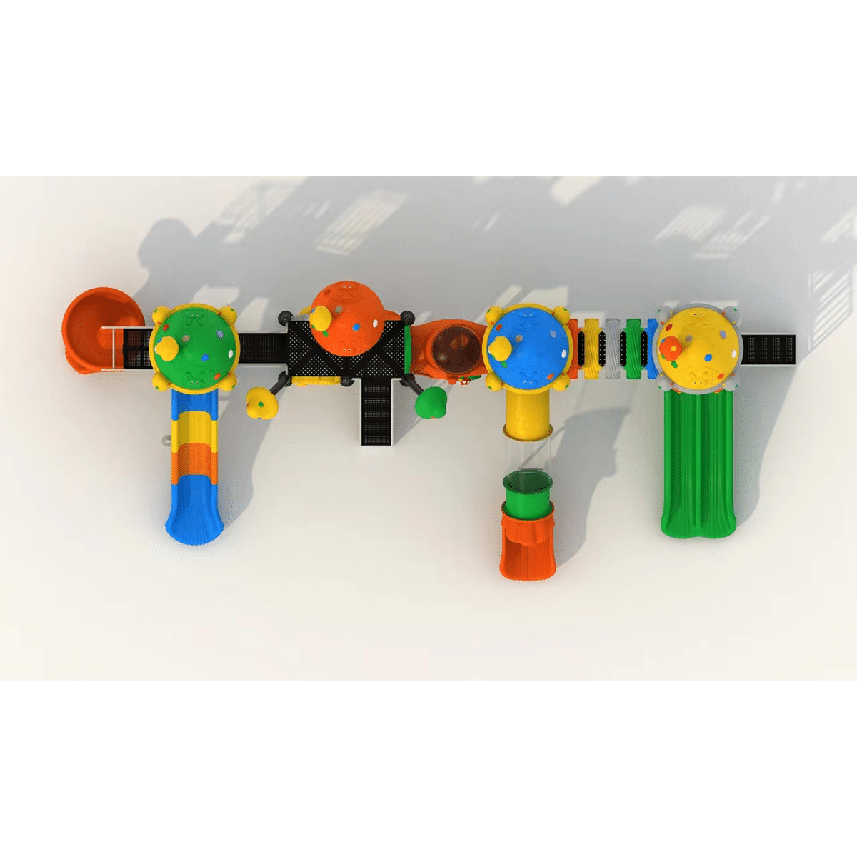 Juego híbrido tubular modular, fabricado con estructura de acero y componentes de plástico rotomoldeado, con terminación en pintura electrostática ideal para la intemperie.