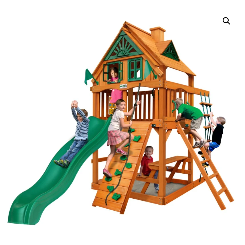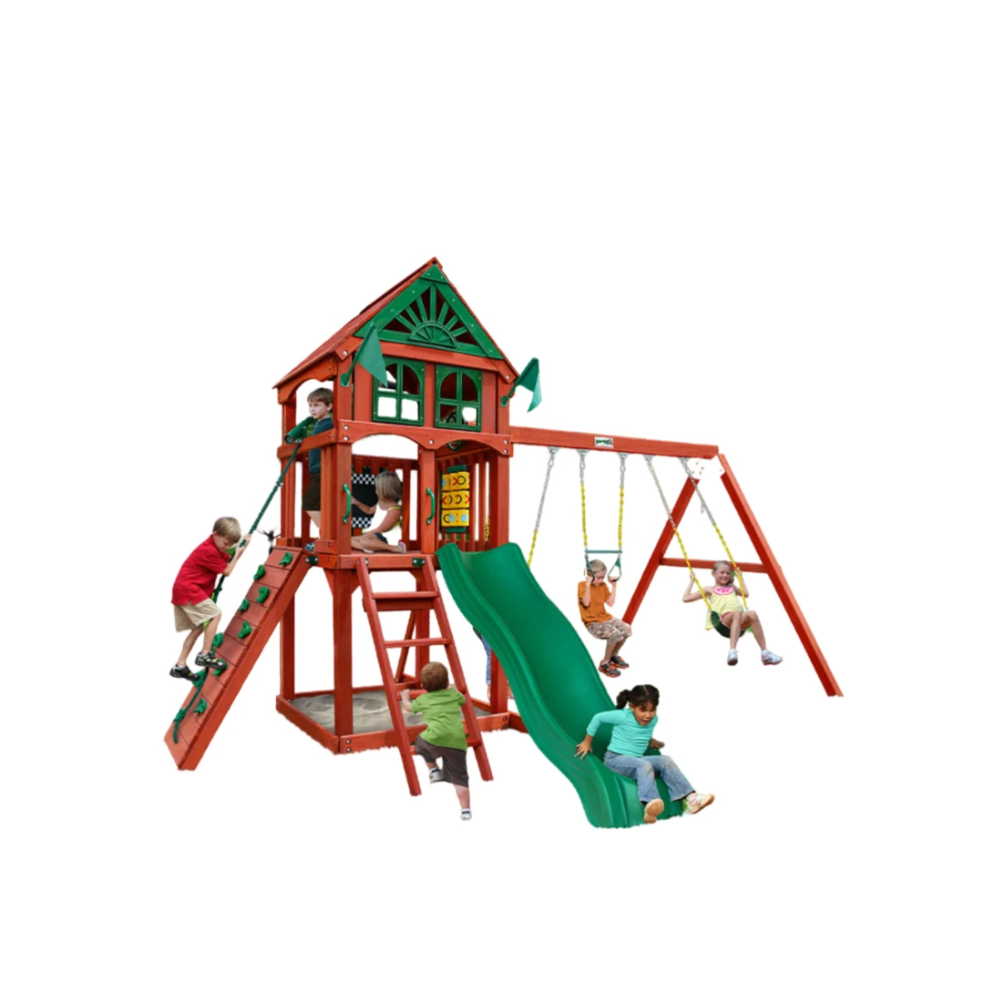 Juego infantil de madera con resbaladilla y columpios, ideal para parques y jardines. Fabricado con materiales resistentes y diseño seguro, promueve la actividad física y el desarrollo de habilidades en niños al aire libre. Perfecto para áreas recreativas, escuelas y espacios residenciales.