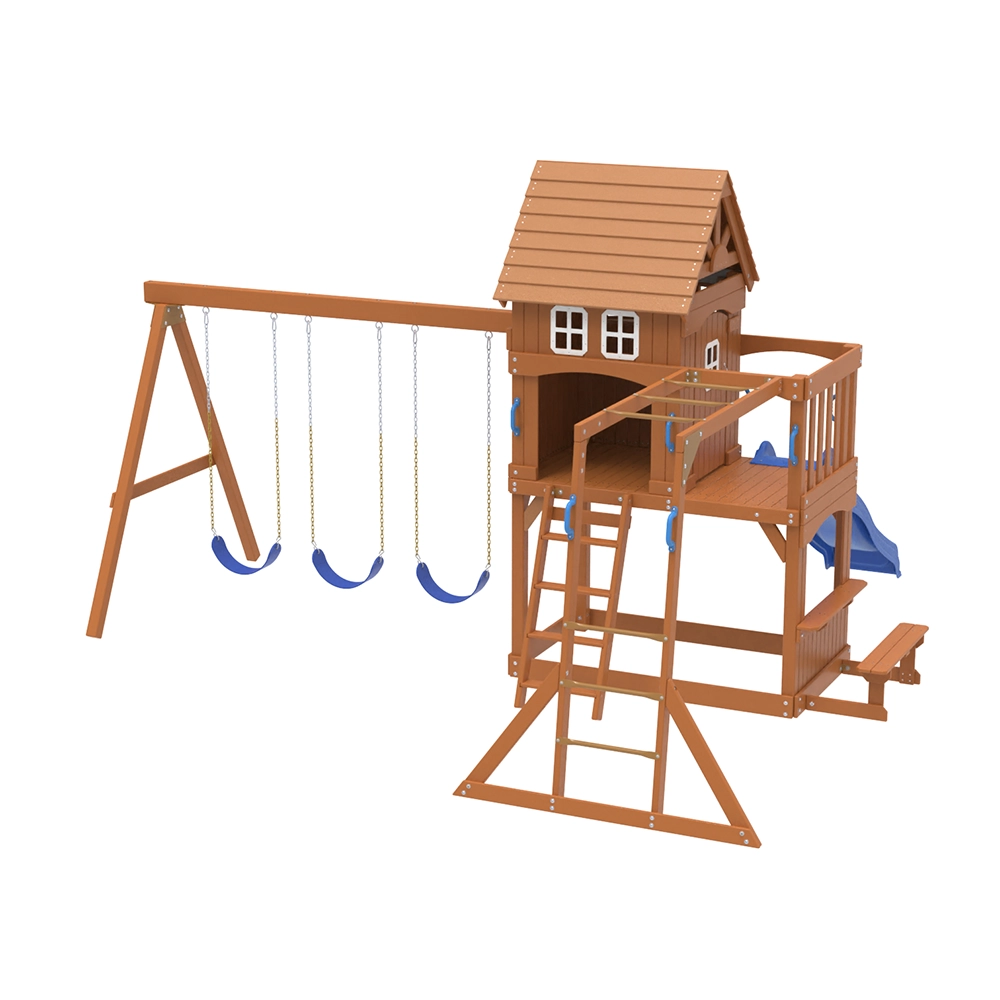 Set de juego residencial de madera diseñado para espacios exteriores del hogar. El Nevado Playset integra múltiples actividades en una sola estructura, fomentando el desarrollo motriz, el equilibrio y la imaginación de los niños en un entorno seguro. Inspirado en la Cuarta Montaña más alta de México y un popular destino de excursionismo cercano a la CDMX, forma parte de la nueva línea residencial PlayoutKids con más de 25 años de experiencia en equipamiento recreativo en México.