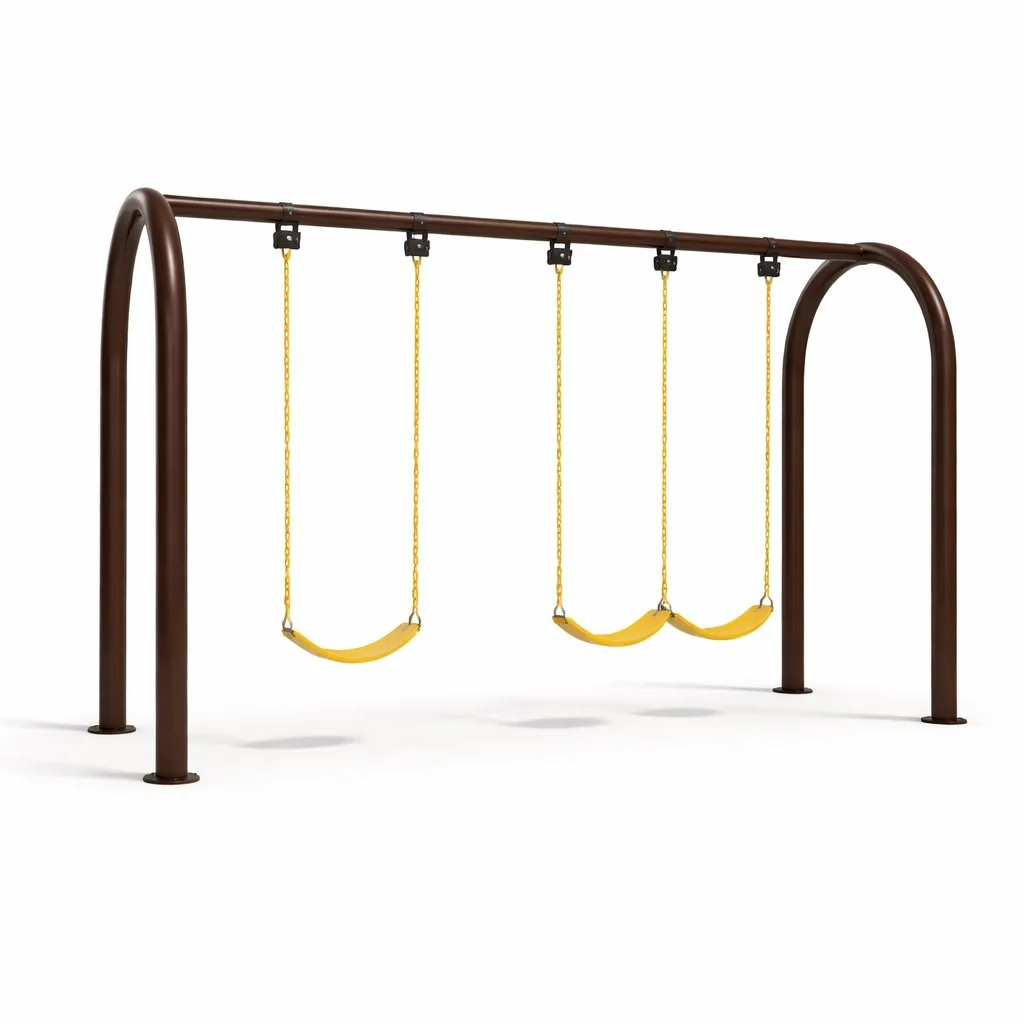 Equipo recreativo pensado para el juego al aire libre, que favorece la actividad física, el equilibrio y la diversión infantil, incluye tres columpios de banda.